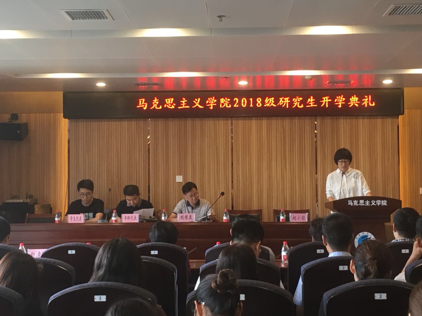 武端利代表导师发言,用质朴幽默的语言和大家分享了自己的求学经验,对同学们提出了努力科研,认真读书,享受生活三个希望,预祝同学们研途生活精彩有得。学生代表吴亚鹏回顾过去的大学生经历,展望未来的研究生生活,从学生的角度出发,做出了自己的计划和安排。
