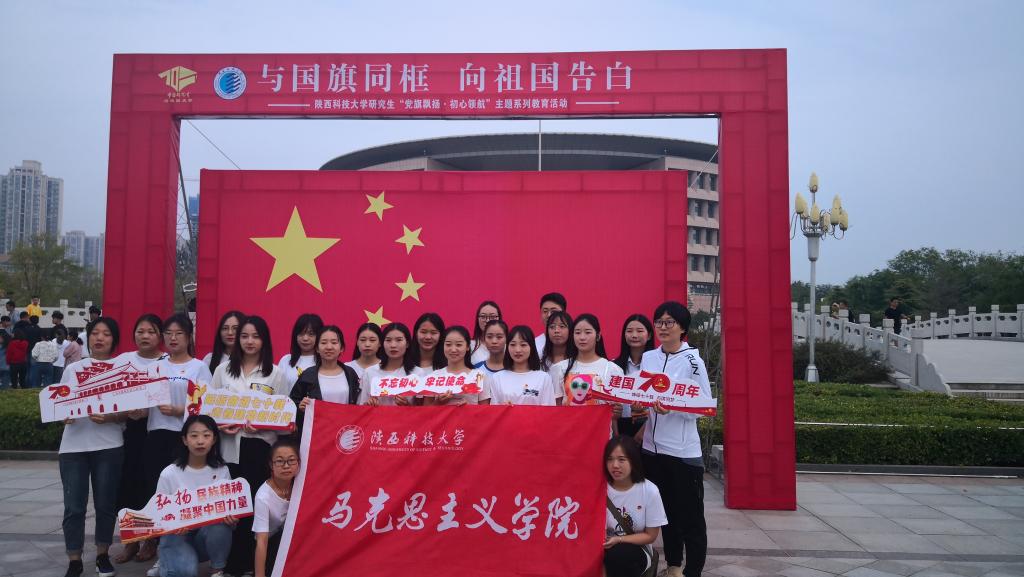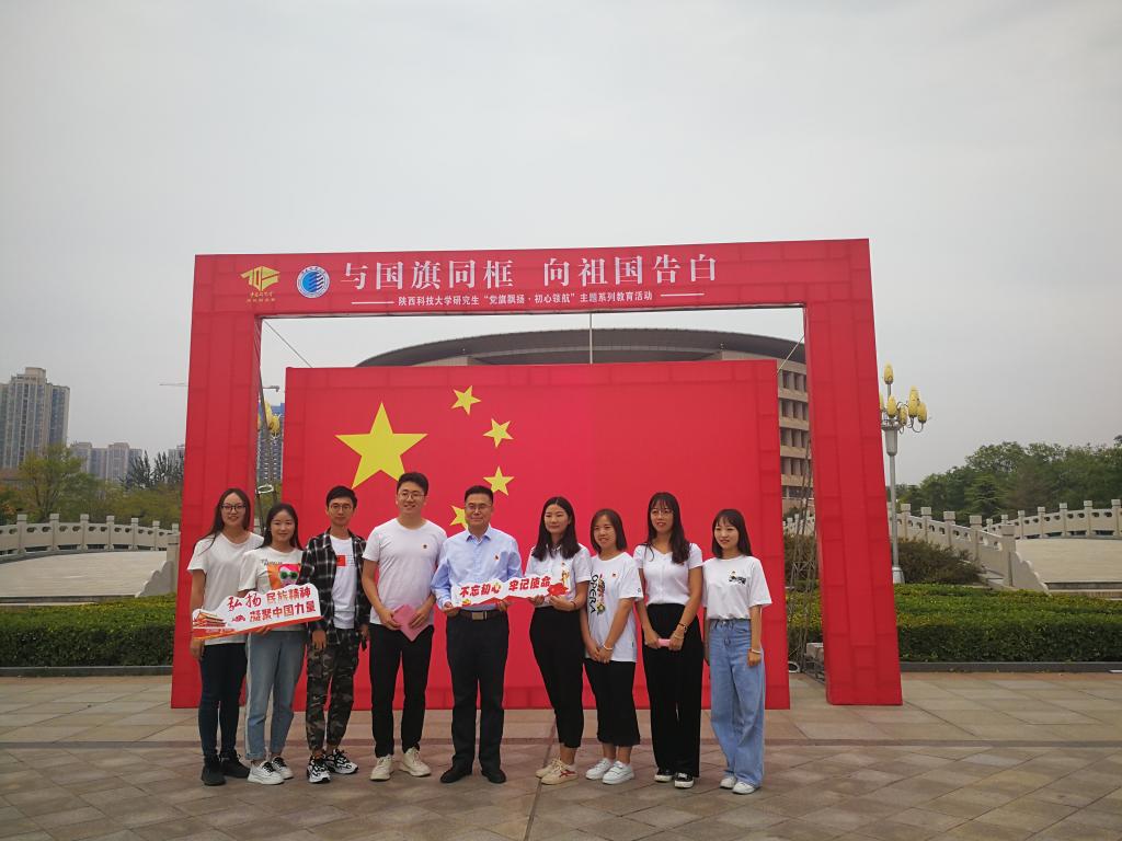 为热烈庆祝中华人民共和国成立70周年,根据《关于开展“党旗飘扬·初心领航”研究生党支部建设年活动的通知》、《关于在全校开展“青春心向党·建功新时代”系列主题思想政治教育活动的通知》精神,按照《陕西科技大学研究生“不忘初心、牢记使命”主题教育方案》,德赢vwin体育官网登录研究生在这个历史性的时刻,开展“与祖国同框,向祖国告白”——国旗下告白活动。
