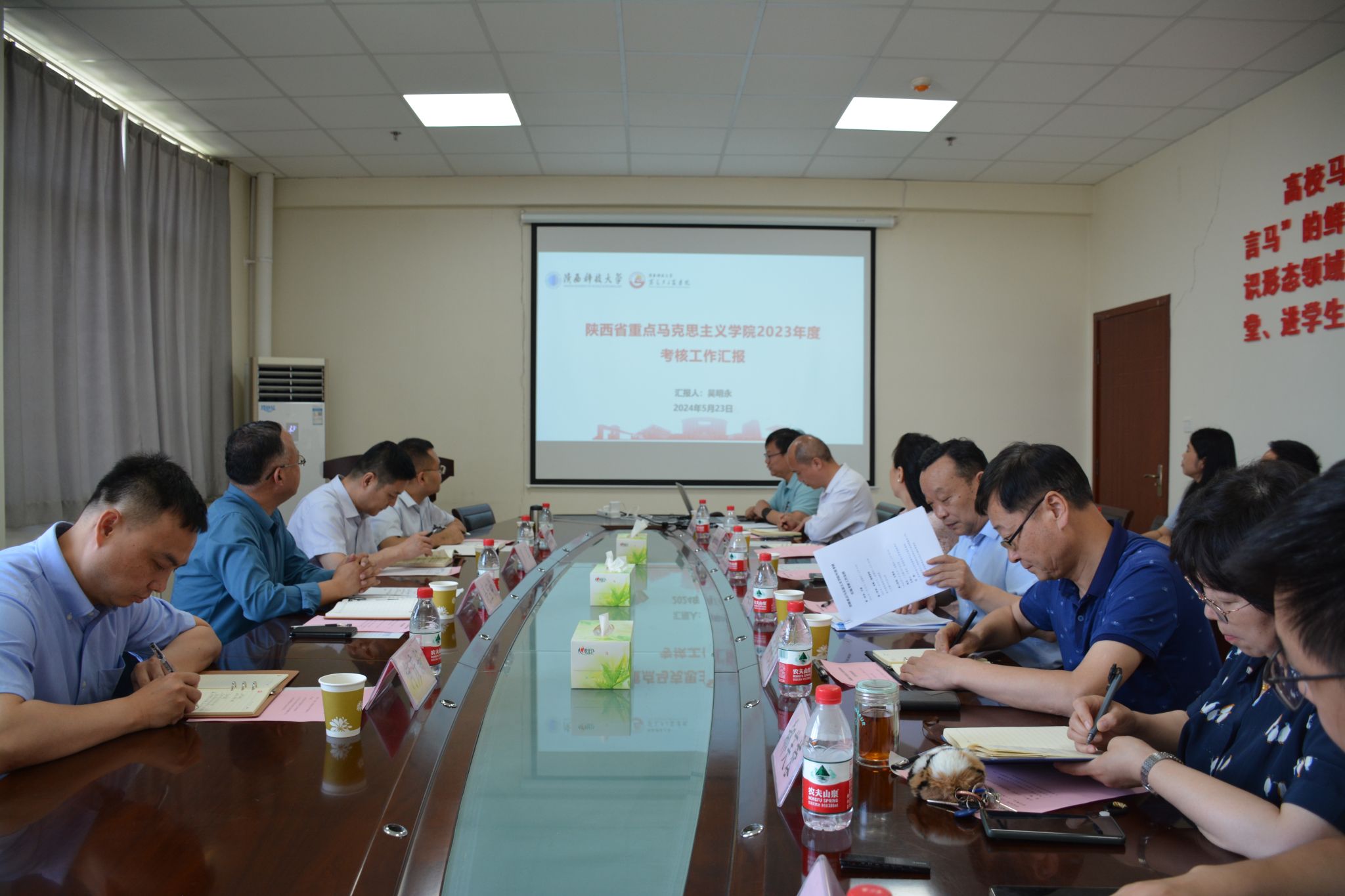 马院院长吴明永从组织领导、人才队伍、教学管理、学科建设、科学服务、党的建设及今后努力方向等方面,向考察组全面汇报了马院2023年建设情况。