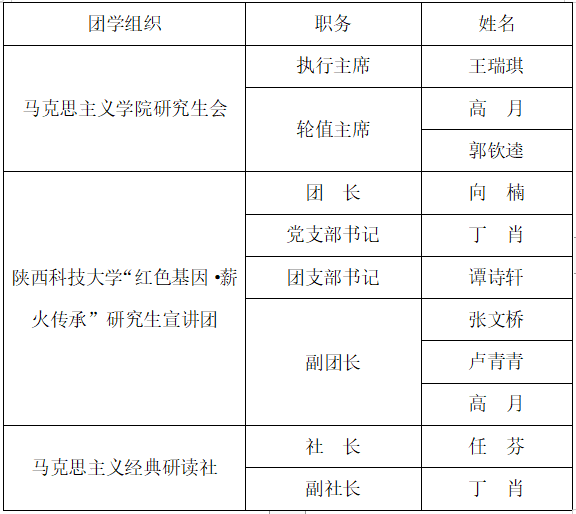 根据陕西科技大学校团委的有关规定和统一安排,结合实际工作需要,按照“公开选拔、公平竞争、择优录取、民主集中”的原则,经过报名、审查、答辩,最终确定德赢vwin体育官网登录2023-2024学年团学组织主席团拟任人选,现公示如下: