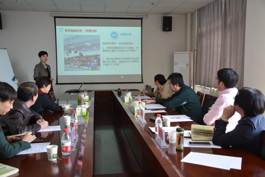 本次比赛分副教授组和讲师组,各教研室按照学校要求分别推荐符合参赛条件的教师2-3人,共9名青年教师参加比赛,老师们通过抽签决定参赛顺序。九位参赛选手依据各自学科特点,精心打造选题,并在教学内容设计、教学方法选用、课件制作等方面做了充分准备,以课件和板书相结合的方式,就各自选题进行现场教学,充分展示了马院青年教师的风采。其中,近代史教研室的武端利老师,以“近代反侵略斗争失败的原因”为题,分析中国近代反侵略斗争失败的原因,阐释斗争失败的最根本因素是社会制度的腐败,最终明确推翻封建主义制度,建立中国社会主义制度的必然性。概论教研室的戚晓薇老师,从大国崛起的正义之道,国际相处的道义之举,人类发展命运的选择等三个方面全面展示新时代习近平外交思想的“和”与“合”;原理教研室的杨文娟老师从商品的属性、商品的使用价值与价值等方面全面揭示马克思的“商品”之谜;思修教研室的师俊华老师,则从人生价值的评价标准着手,结合案例分别从坚持能力有大小与贡献须尽力相统一、坚持物质贡献与精神贡献相统一、坚持完善自我与贡献社会相统一等三个方面阐释了人生价值评价的方法。